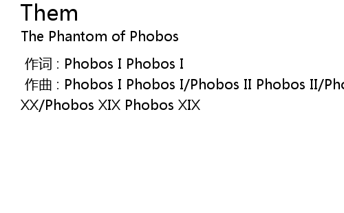 | [00:00.000] | zuo qu : Phobos I Phobos I Phobos II Phobos II Phobos XX Phobos XX Phobos XIX Phobos XIX |