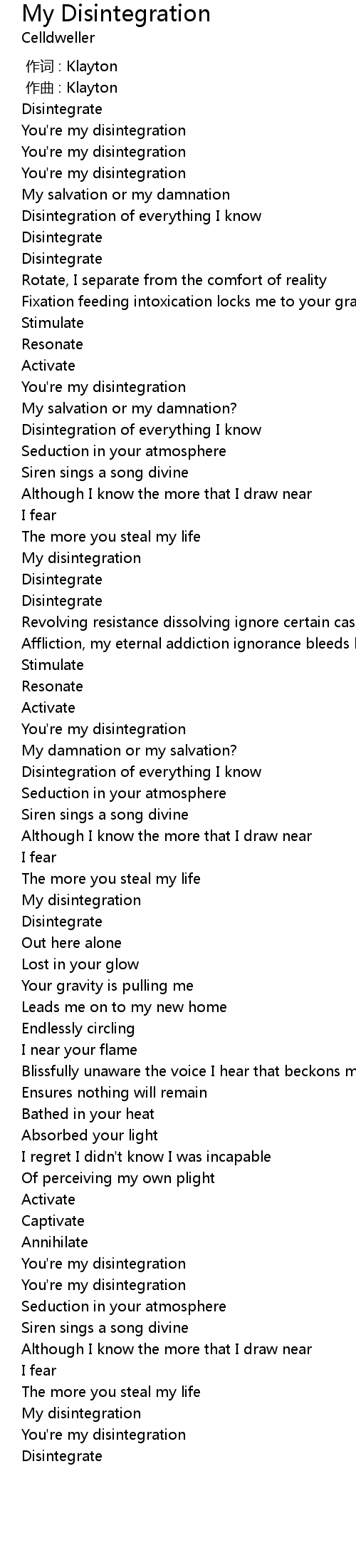 | [03:04.000] | My disintegration |