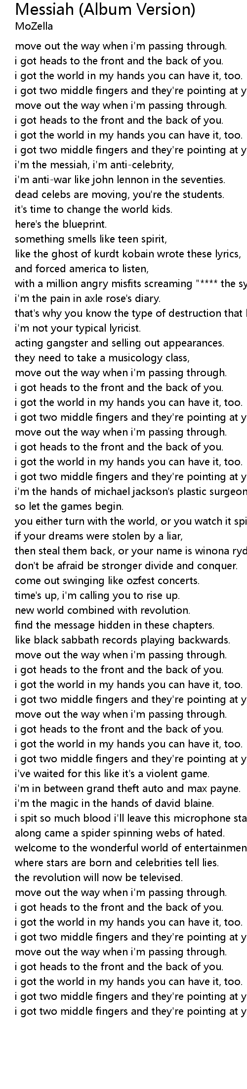 | [00:32.10] | i'm the messiah, i'm anti-celebrity, |