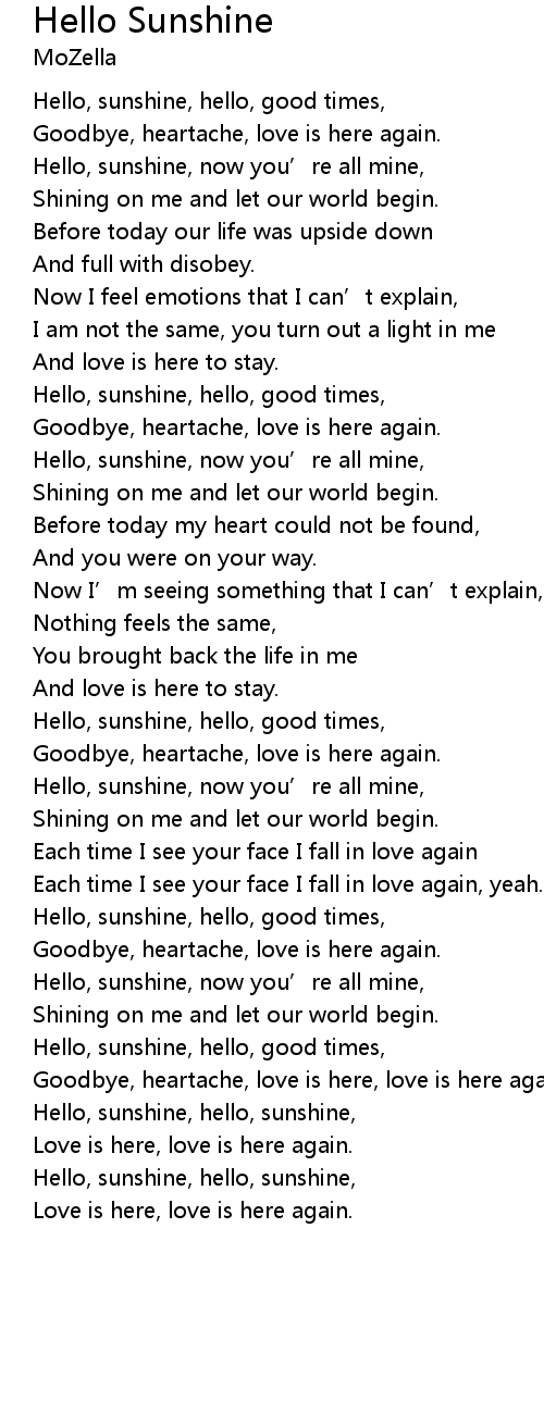 | Hello, sunshine, now you' re all mine, | |