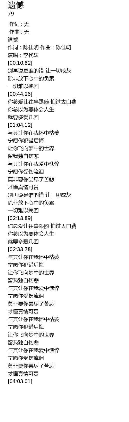 | [00:01.96] | 遗憾 |