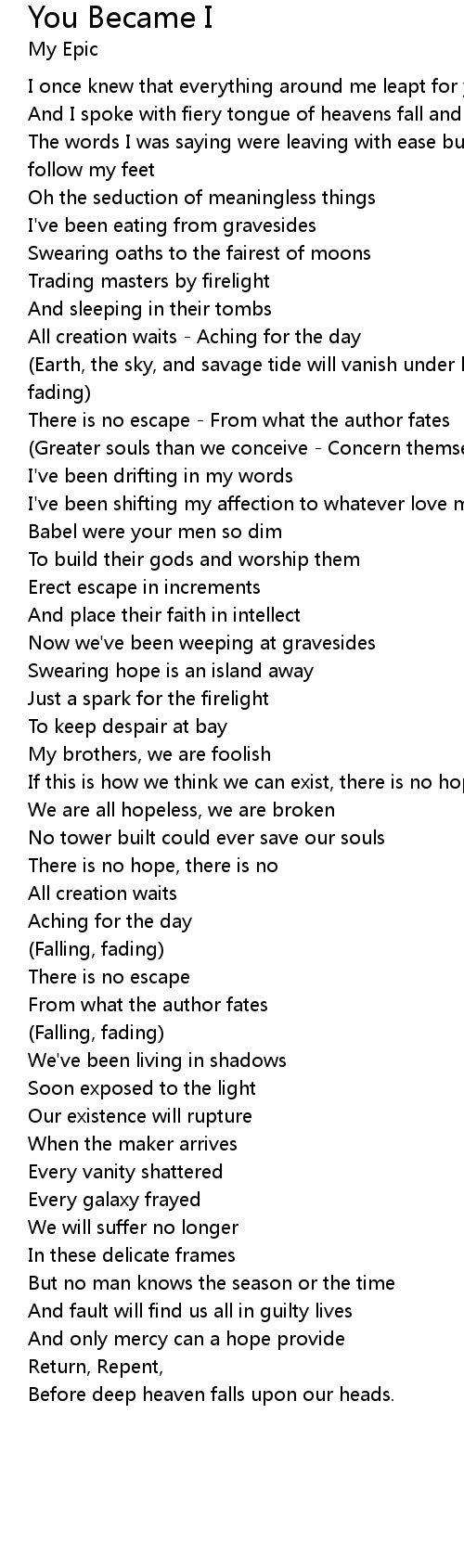 And I spoke with fiery tongue of heavens fall and of your kingdom come |