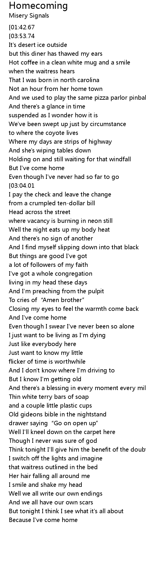 | [01:30.86][03:04.01][05:22.80] | I've come home |