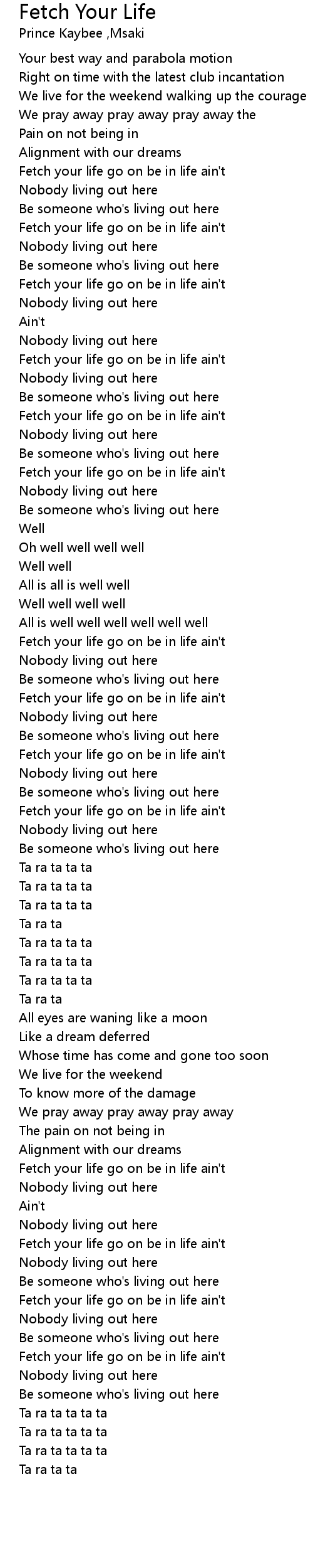 Fetch your life go on be in life ain't |