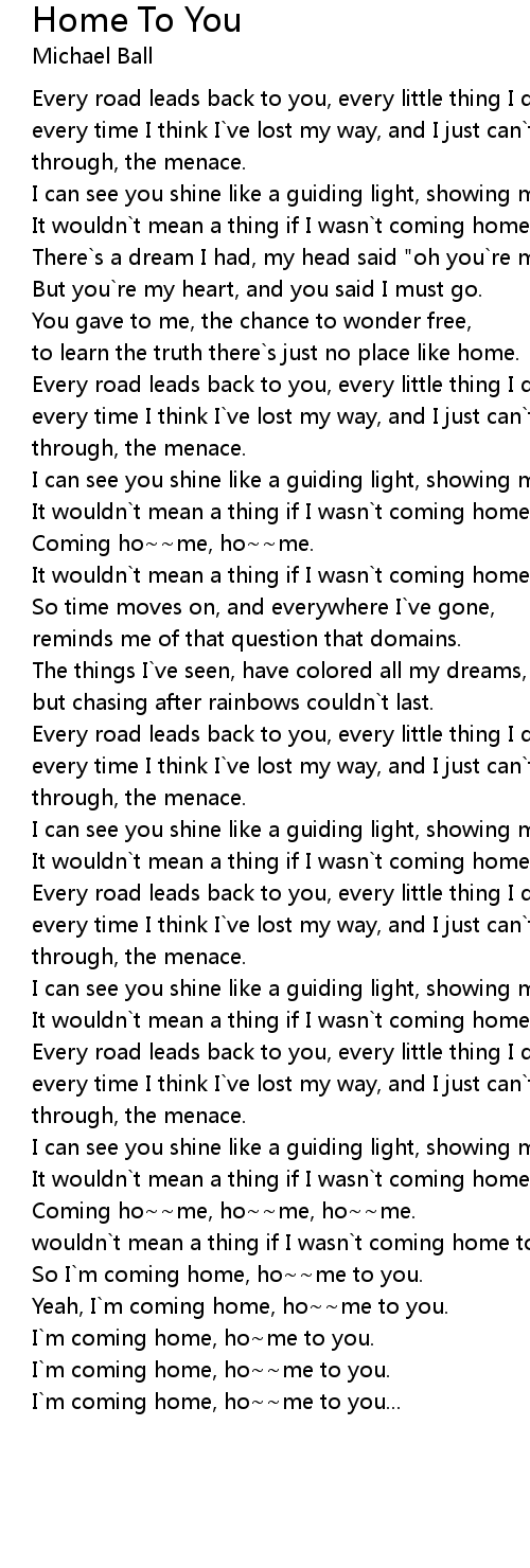 wouldn`t mean a thing if I wasn`t coming home to you. |