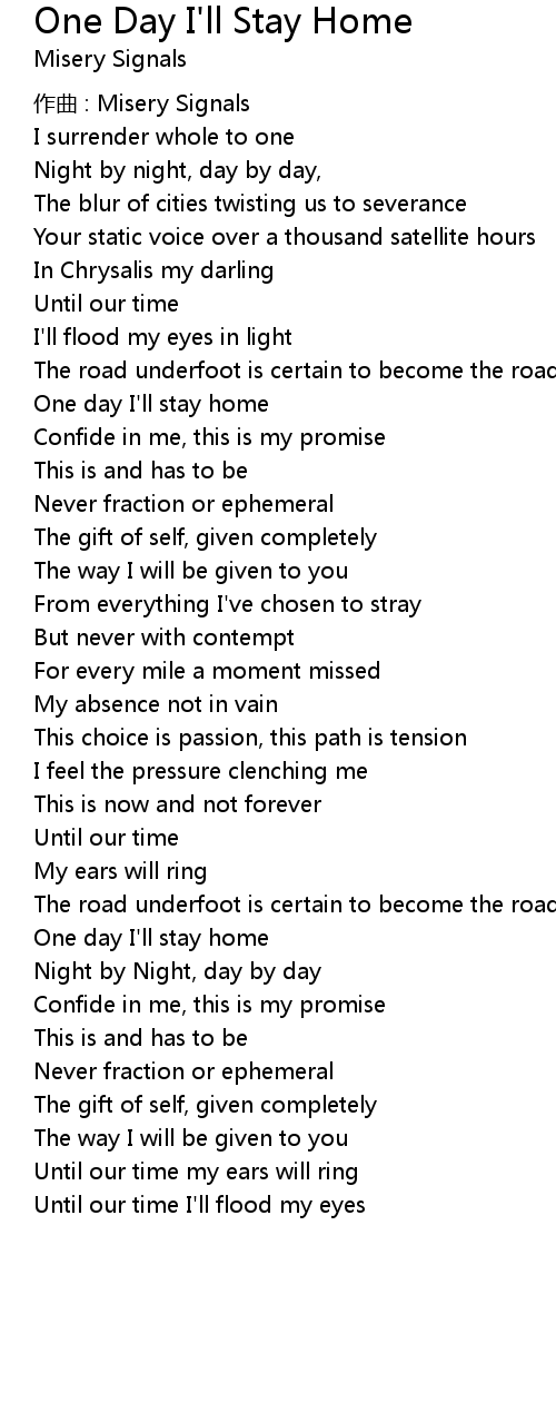 | One day I' ll stay home | |