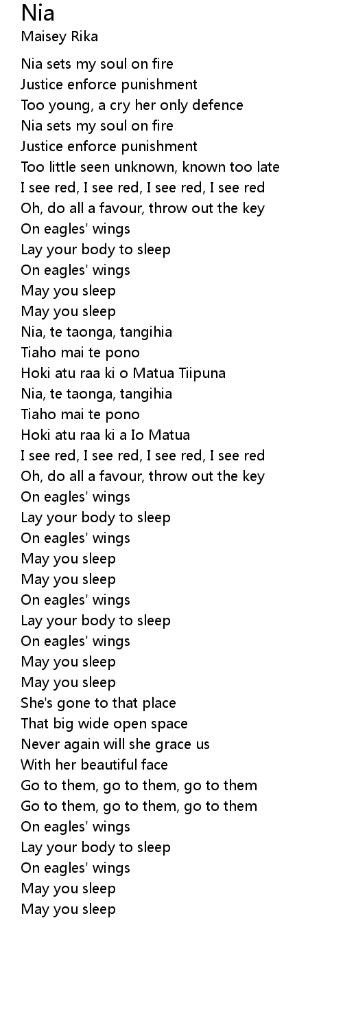 Nia, te taonga, tangihia |