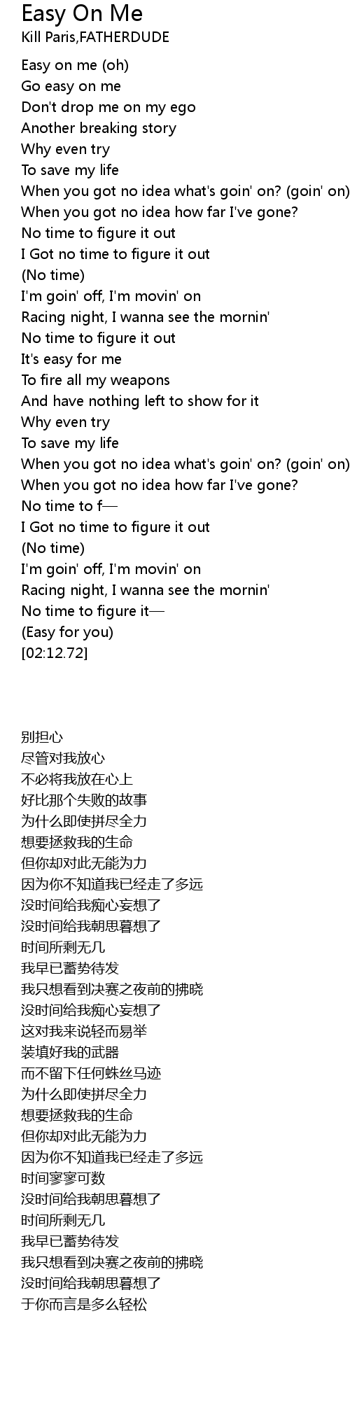 | [00:02.25] | Easy on me oh |