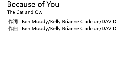 | [00:00.000] | 作曲 : Ben Moody/Kelly Brianne Clarkson/DAVID HALL HODGES |