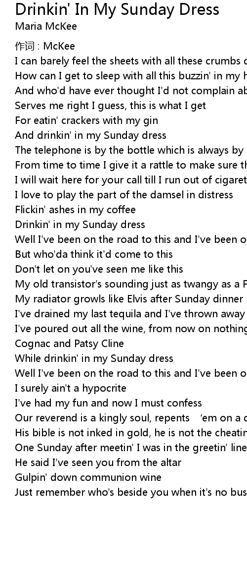 | Drinkin' in my Sunday dress | |