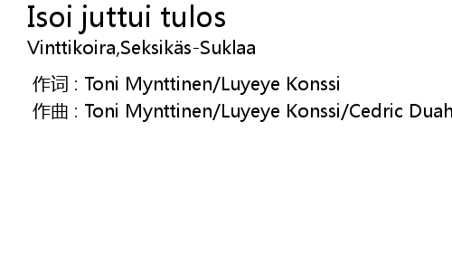 | [00:00.000] | 作词 : Toni Mynttinen/Luyeye Konssi |