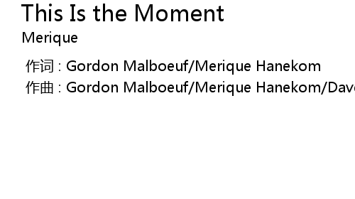 | [00:00.000] | 作词 : Gordon Malboeuf/Merique Hanekom |