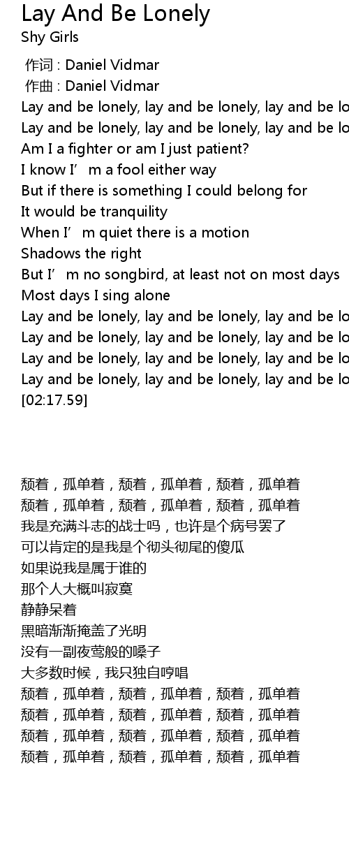 | [01:58.19] | Lay and be lonely, lay and be lonely, lay and be lone |