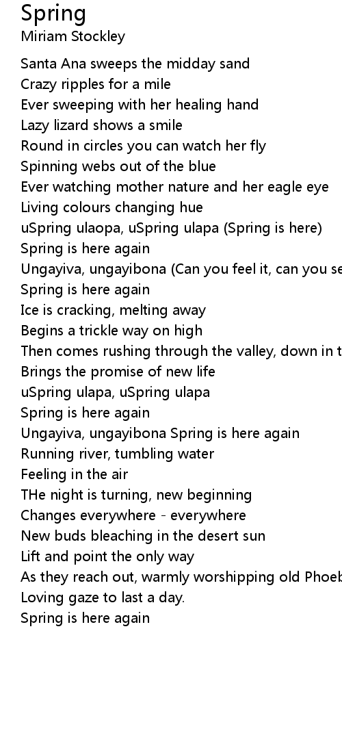 uSpring ulaopa, uSpring ulapa (Spring is here) |