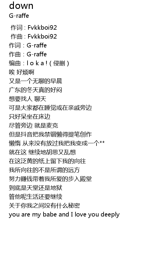 | [00:00.000] | 作词 : Fvkkboi92 |