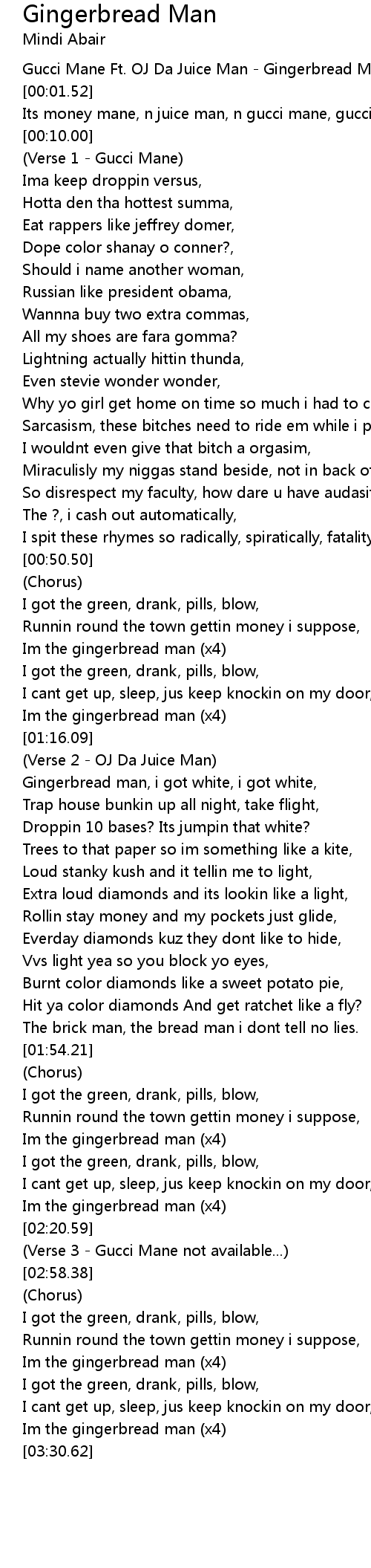 [00:00.52] Gucci Mane Ft. OJ Da Juice Man - Gingerbread Man