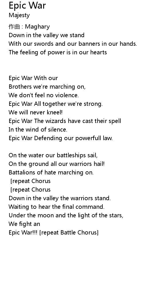 | Under the moon and the shining stars, we' re fighting an epic war. Chorus: | |