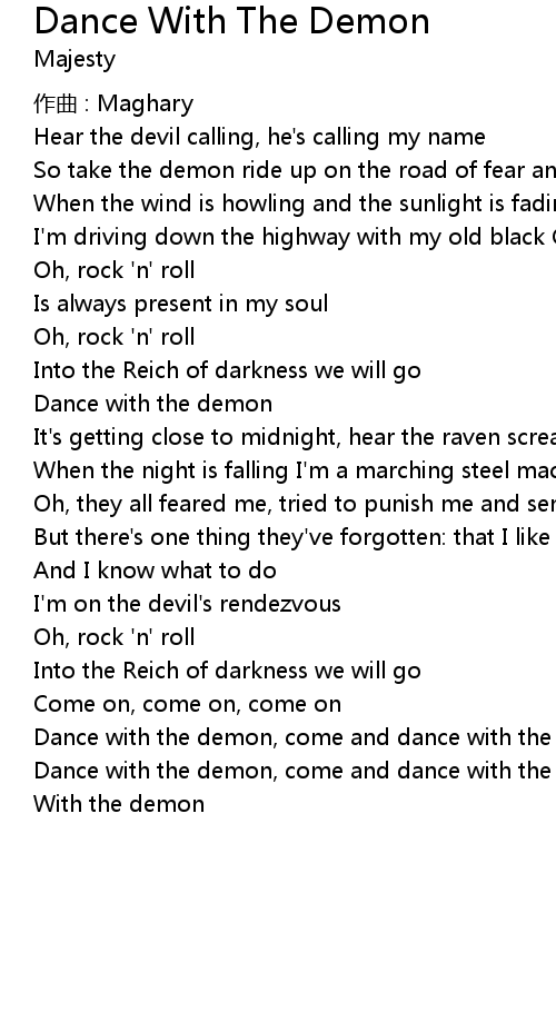 | Dance with the demon, come and dance with the demon | |