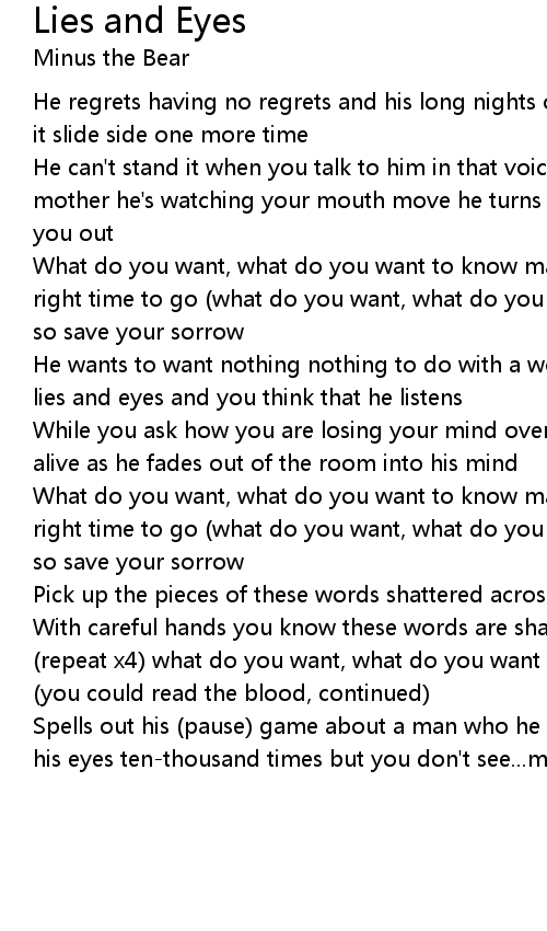With careful hands you know these words are sharp, and you could read the blood (repeat x4) what do you want, what do you want to know you could read the blood (you could read the blood, continued) |