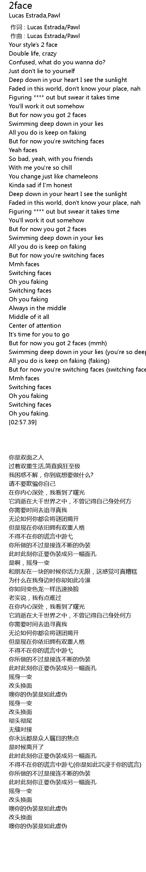 | [00:49.02] | But for now you got 2 faces |