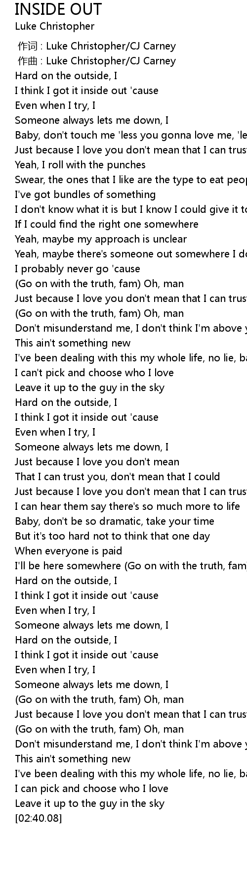 | [00:01.000] | zuò qǔ : Luke Christopher CJ Carney |
