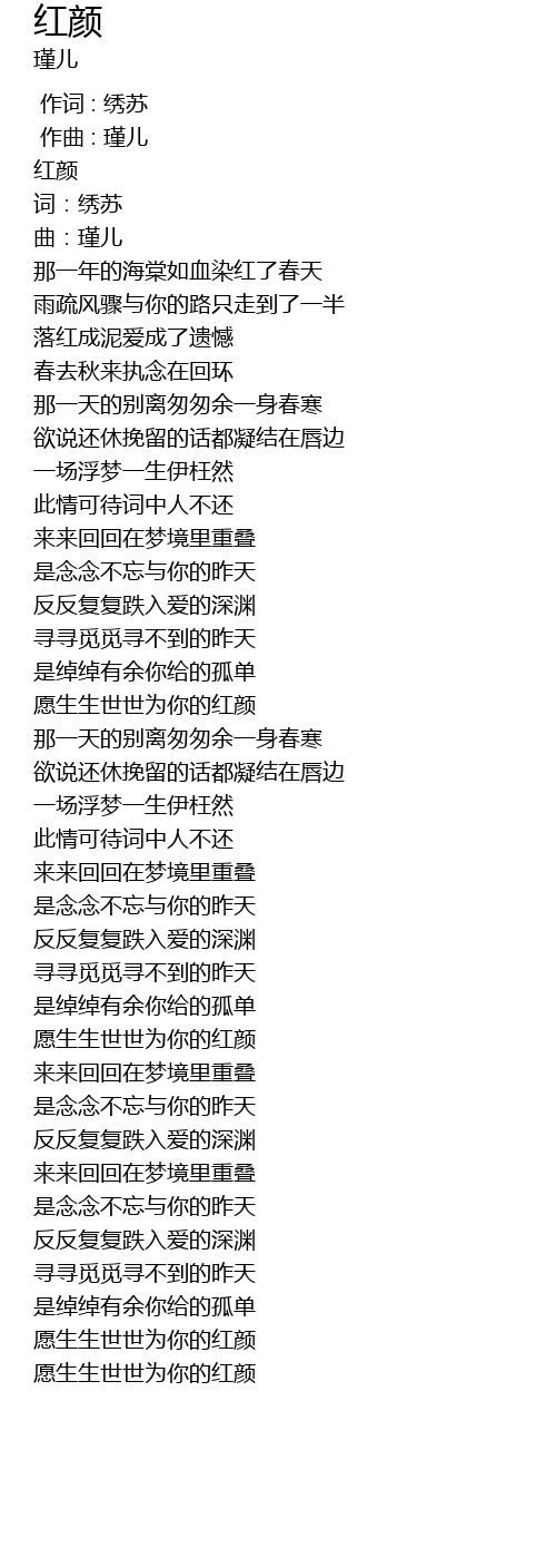 | [01:45.328] | 愿生生世世为你的红颜 |