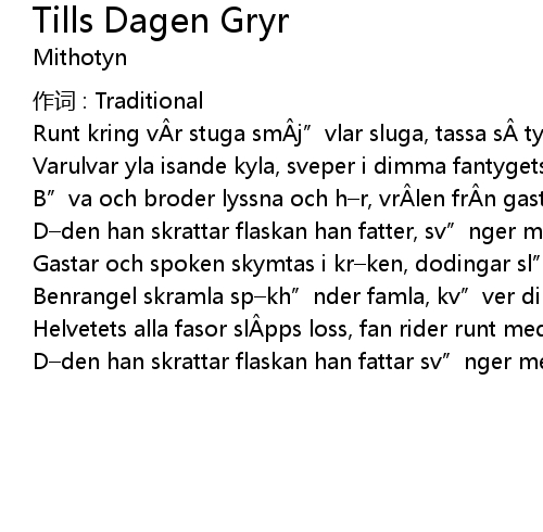 | Varulvar yla isande kyla, sveper i dimma fantygets dans. | |