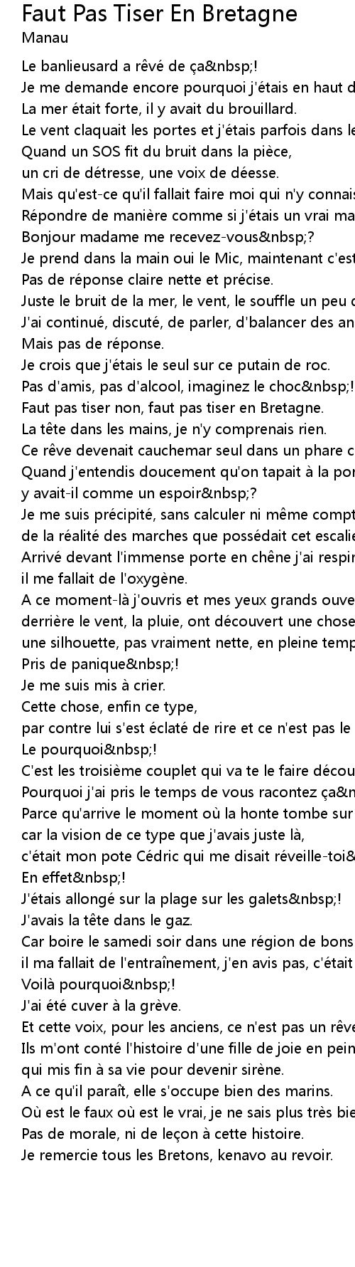 | Song | Faut Pas Tiser En Bretagne |