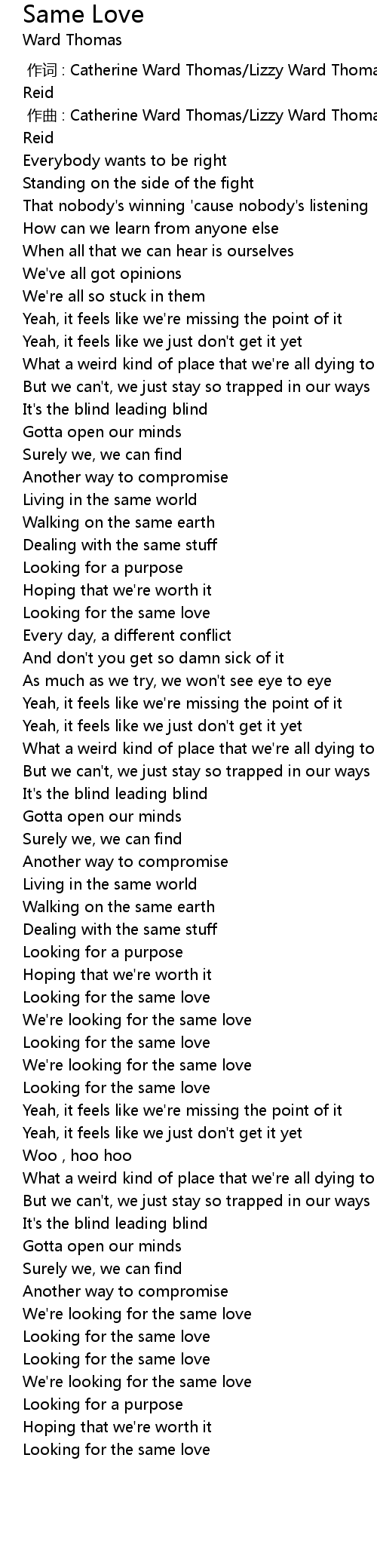 | [03:01.63] | We're looking for the same love |