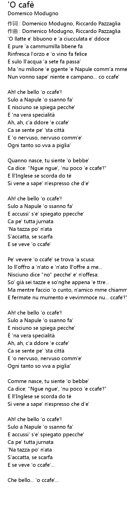 | 作词 : Domenico Modugno, Riccardo Pazzaglia | |