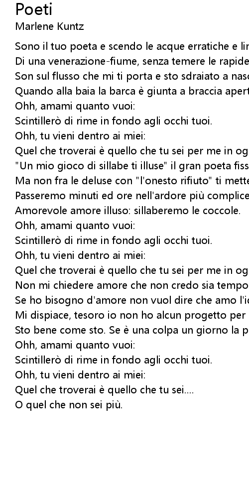 | Scintillero di rime in fondo agli occhi tuoi. | |