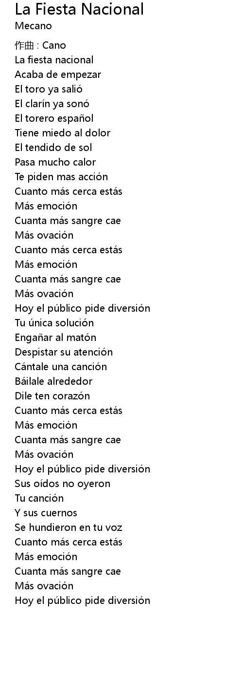 | Song | La Fiesta Nacional |