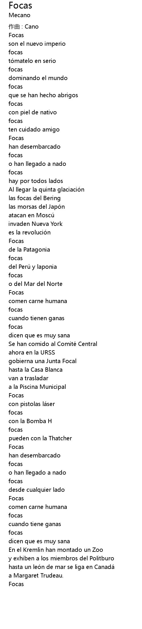 | Song | Focas |