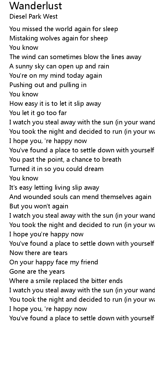 | [00:56.46] | I watch you steal away with the sun (in your wanderlust) |