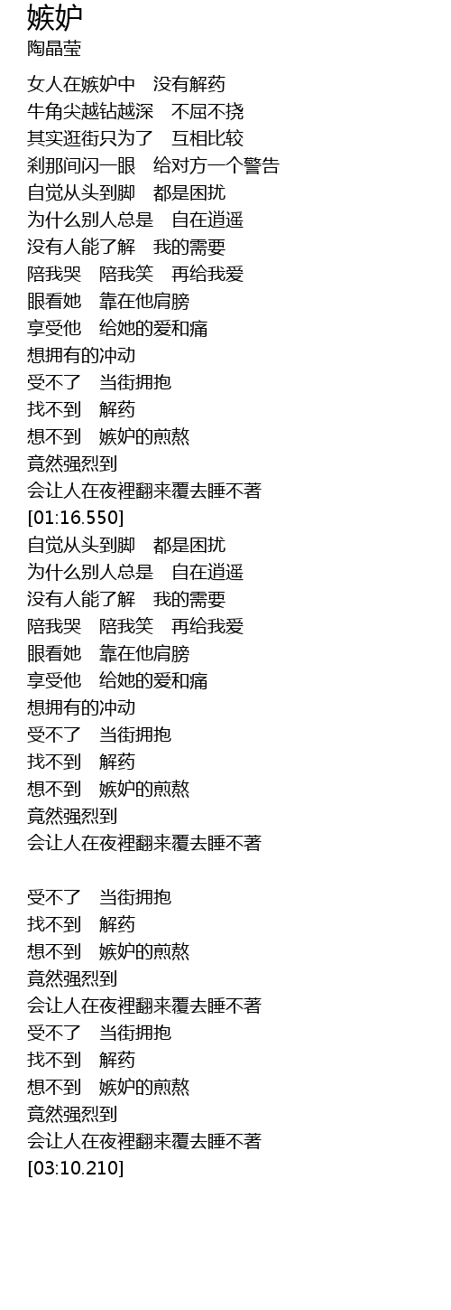 | [01:06.649] | 想不到 嫉妒的煎熬 |