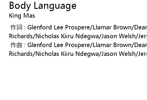 | [00:00.000] | 作曲 : Glenford Lee Prospere/Llamar Brown/Dean Fraser/Dwight Richards/Nicholas Kiiru Ndegwa/Jason Welsh/Jermaine Campbell |