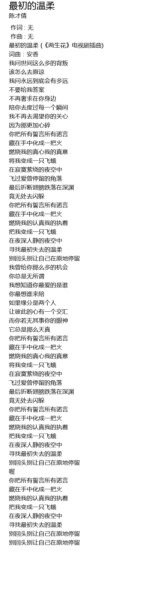| [00:04.443] | 最初的温柔 (《两生花》电视剧插曲) |