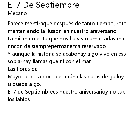 | El 7 de Septiembrees nuestro aniversarioy no sabremos si besarnosen la cara o en los labios. |