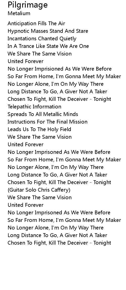 So Far From Home, I'm Gonna Meet My Maker |