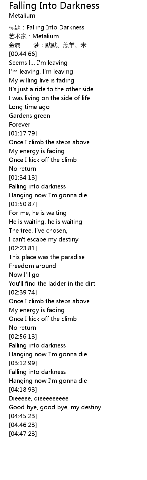 | [00:00.00] | biao ti: Falling Into Darkness |
