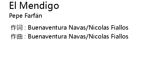 | [00:00.000] | 作词 : Buenaventura Navas/Nicolas Fiallos |