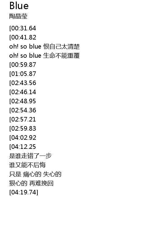 | [02:05.03][00:31.64] | i feel blue 没有风的下午 |