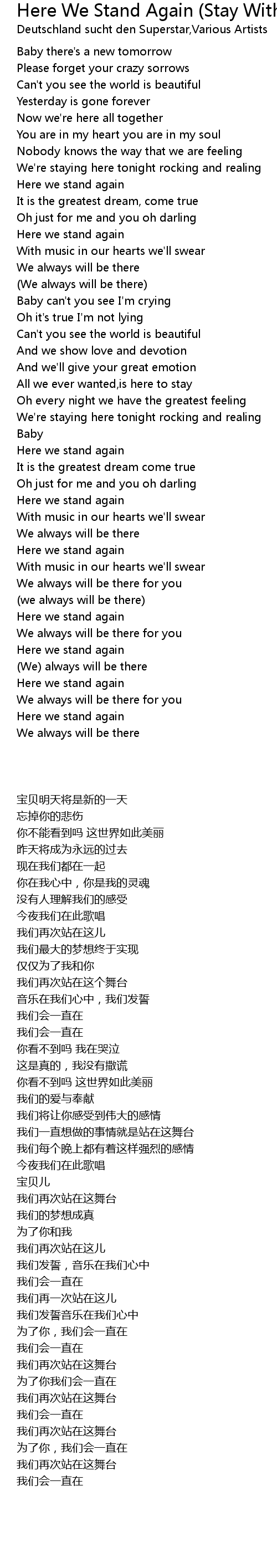 Song Here We Stand Again (Stay With Me Tonight)