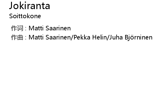| [00:00.000] | zuò qǔ : Matti Saarinen Pekka Helin Juha Bj rninen |