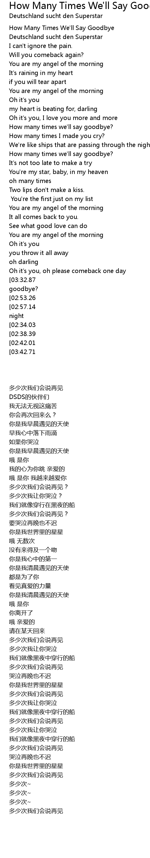 | [03:53.08][03:32.87][03:03.58][02:49.42][02:19.51] | How many times we'll say goodbye? |