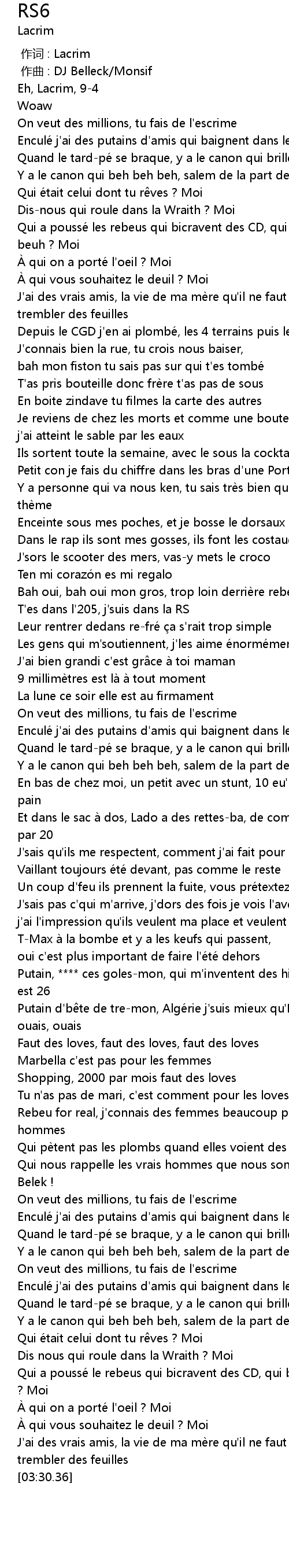 | [00:33.16] | Y a le canon qui beh beh beh, salem de la part de Lacrim |