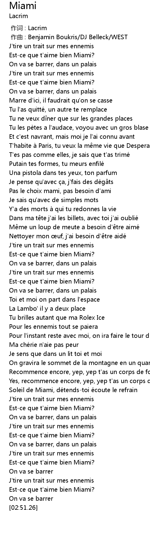 | [02:37.60] | Est-ce que t'aime bien Miami? |