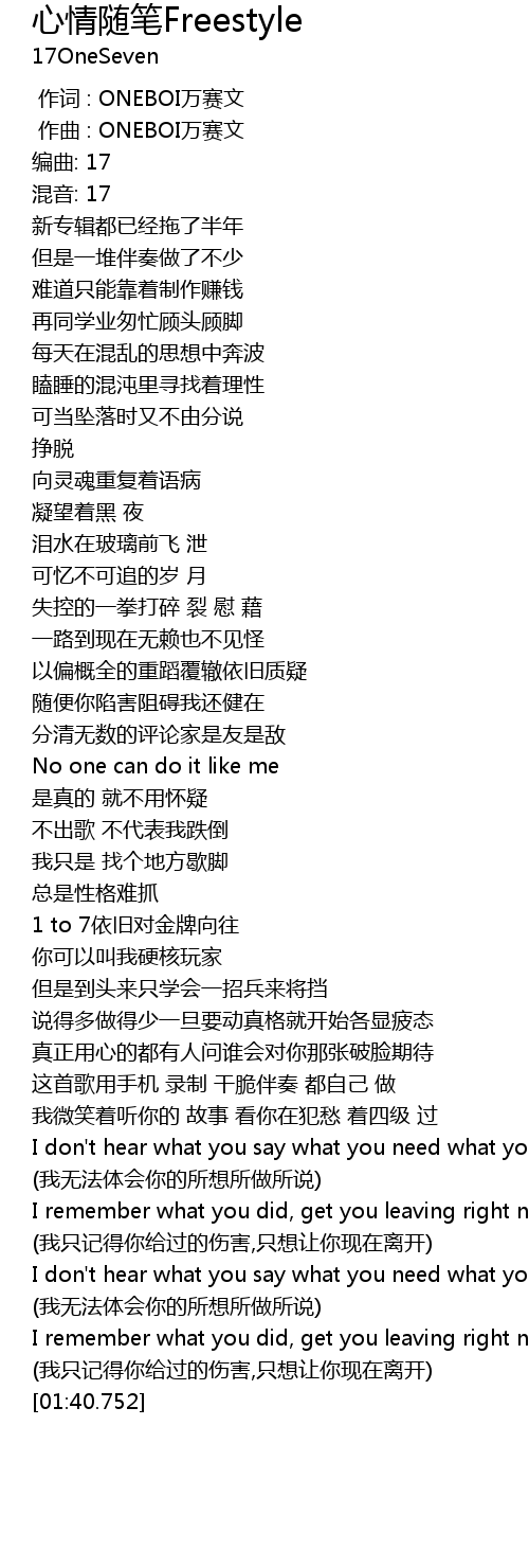 | [00:00.000] | 作词 : ONEBOI万赛文 |