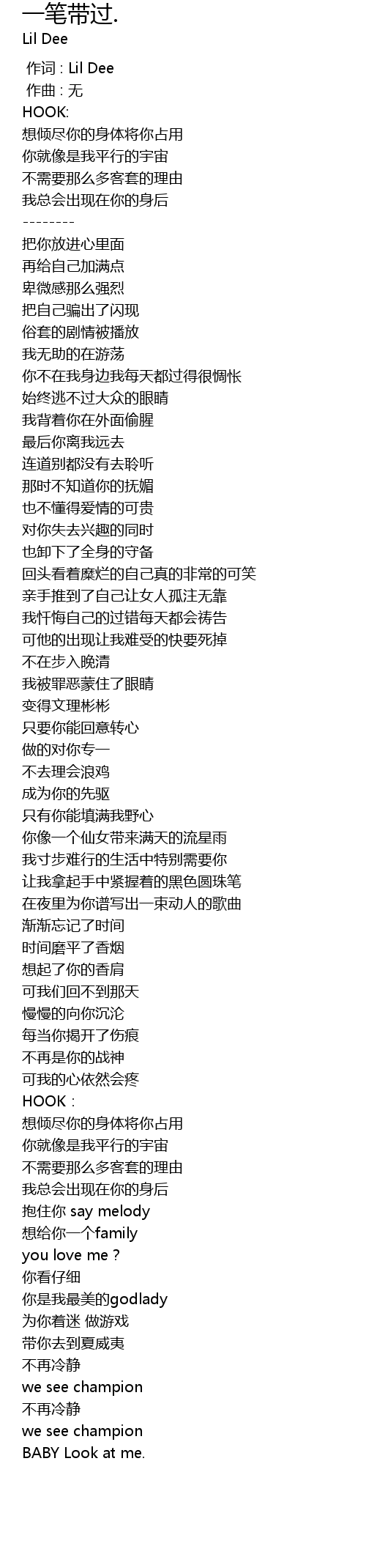 | [00:00.000] | 作词 : Lil Dee |