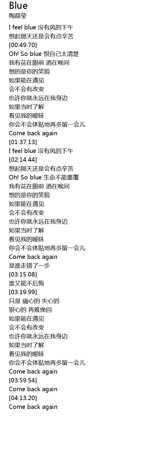 | [03:52.74] | Come back again |